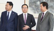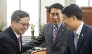 여야가 국회 예산결산특별위원회 소위에 참여하는 의원 수를 두고 대립하면서 예산안 심사가 지연되고 있다. 19일 국회에서 김동연 경제부총리 겸 기획재정부 장관(왼쪽), 안상수 예산결산특별위원장(가운데), 조정식 더불어민주당 예결위 간사 등이 만났다. 김동주 기자 zoo@donga.com}
