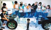 세르지오 호샤 한국GM 사장(오른쪽에서 네 번째)이 24일 인천 부평구 본사 홍보관에서 열린 ‘2012 대한민국 오토 사이언스 캠프’에 참가한 학생들에게 전기자동차의 구동 원리에 대해 설명하고 있다. 한국GM 제공}