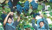 2일 포도 주산지인 경북 영천시 금호읍 신월리 주민들이 탐스럽게 익은 포도를 수확하고 있다. 영천시 제공}
