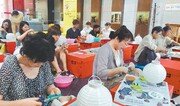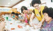 8일 대구 중구 달성동 대한적십자사 대구지사 별관에서 열린 건강한 여름나기 행사에서 봉사단원들이 노인들에게 삼계탕을 대접하고 있다. 대한적십자사 대구지사 제공}