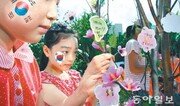 15일 대구 중구 동인동 국채보상운동기념공원 화합의 장에서 열린 나라꽃 무궁화 축제에서 어린이들이 소원을 적은 엽서를 무궁화에 걸고 있다. 이 축제는 16일까지 열린다. 대구 중구 제공}