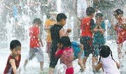 7일 대구 달서구 이곡동 와룡공원 바닥분수대에서 어린이들이 솟아오르는 물줄기를 맞으며 무더위를 식히고 있다. 달서구 제공}