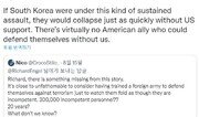 이슬람 무장단체 탈레반이 아프가니스탄을 장악한 가운데, 워싱턴포스트(WP) 칼럼니스트 ‘마크 티센’이 한국도 미군의 지원이 없으면 비슷한 처지가 될 것이라고 말해 네티즌과 설전을 벌였다.조지 W 부시 전 미국 행정부에서 백악관 수석 연설 보좌관을 지낸 티센은 16일 트위터에 “만약 한국이 이처럼 지속적인 공격을 받는 상황이었다면 미국의 지원 없이는 순식간에 무너졌을 것이다. 미군 없이 스스로를 방어할 수 있는 동맹국은 사실상 없다”고 글을 올렸다.그러면서 “6·25 전쟁 이후 모든 미군이 한반도에서 철수했다면, 한반도는 북한의 지배하에 빠르게 통일됐을 것이다. 미군이 아직 거기 있는 이유는 북한을 억제하고 그 결과를 방지하기 위해 여전히 필요하기 때문이다”라고 주장했다.이에 한 네티즌이 “한국은 정교하고, 현대적이며, 다재다능하고, 준비됐으며, 고도로 훈련된 군사를 가지고 있다. 아프간은 비교조차 되지 않는다”고 반박했다.또 다른 네티즌도 “말도 안 되는 소리다. 한국은 아프가니스탄보다 군사력이 훨씬 발달해 있으며, 더 중요한 것은 한국 군인들은 실제로 자국 정부를 지지하고 있다는 점이다”고 댓글을 달았다.그러자 티센은 “북한군도 탈레반보다 더 발달해 있다”, “요점은 (이번 일이) 미국 정책의 실패라는 것”이라며 조 바이든 미국 대통령의 아프간 철군 결정을 비판했다.그는 “바이든의 아프간 철수는 트루먼의 유산에 대한 배신이다. 바이든이 아프간에 한 일을 트루먼이 (과거) 독일, 일본, 한국에 행했다면 오늘날 매우 다른 세계가 돼버렸을 것”이라고 했다.제2차 세계대전이 끝난 뒤 미국은 한국과 일본, 독일 등 해외에 미군을 주둔시켰는데 이때 미국 대통령은 해리 S. 트루먼이었다.계속된 반박 글에 티센은 “그들이 스스로를 방어할 수 있다면 왜 우리가 거기에 있나? 그럼 일본과 한국에서 (미군을) 철수하자는 말인가?”라고 반문하기도 했다.박태근 동아닷컴 기자 ptk@donga.com}