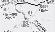 서울과 강원 양양군을 잇는 동서고속도로 중 춘천∼동홍천 구간 17.1km가 30일 조기 개통된다. 21일 한국도로공사에 따르면 이 구간은 당초 12월 개통 예정이었으나 서울에서 홍천과 설악권으로 운행하는 운전자들의 편의를 위해 개통 시기를 2개월가량 앞당겼다. 이 구간은 7월 개통된 서울∼춘천 고속도로와 연결되며 기존 국도를 이용할 때보다 13분가량 단축된다. 국도 44호선과 연결되는 동홍천 나들목은 화촌면 성산리에 있다. 현재는 서울∼춘천 고속도로를 이용해 홍천과 설악권으로 갈 경우 중앙고속도로로 갈아탄 뒤 홍천요금소를 통해 국도 44호선으로 진입해야 한다. 잠정 결정된 통행요금은 1400원(1종 기준)으로 서울∼춘천 고속도로(5900원)를 이용해 동홍천 나들목까지 갈 경우 7300원을 내야 한다. 춘천에서 중앙고속도로를 거쳐 이 구간으로 갈아탄 뒤 동홍천으로 나올 때의 요금은 1800원(1종 기준)으로 잠정 결정됐다. 왕복 4차로인 이 구간에는 터널 7개(7141m), 교량 27개(5477m)가 만들어졌다.춘천=이인모 기자 imlee@donga.com}