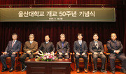 ‘젊은 시절 어느 학교 공사장에서 돌을 지고 나르면서 바라본 대학생들은 학교 교육을 제대로 받지 못한 나에게는 한없는 부러움과 동경의 대상이었다. 그때 이루지 못했던 배움에 대한 갈망이 여기에 배움의 주춧돌을 놓게 하였으니….’ 울산대 설립자인 고 정주영 현대그룹 회장이 한 말이다. 울산대는 정 회장의 말을 창학(創學) 정신으로 바위에 새겨 본관 도서관 입구에 세워 놓았다. 울산대가 16일로 개교 50주년을 맞았다. 울산대는 이날 행정본관 강당에서 오연천 총장 등이 참석한 가운데 개교 50주년 기념식을 열었다. 행사에는 신종 코로나바이러스 감염증(코로나19) 확산을 우려해 최소 인원만 참석했다. 고 정 회장은 울산에 현대자동차(1967년)와 현대중공업(1972년) 등 현대 계열사를 창업하면서 공업 입국을 위한 인재 양성의 중요성을 깨닫고 1970년 3월 16일 울산공과대학을 개교했다. 1972년 국내 처음으로 영국의 산학협동교육 제도인 샌드위치 교육 시스템을 도입해 장단기 산업체 현장학습 및 인턴십으로 한국 실정에 맞게 정착시켰다. 1985년 3월 종합대학으로 승격됐다. 산학협동교육은 조선·화학·자동차산업 등이 밀집한 산업수도 울산에 위치한 지리적인 이점과 재단 모기업인 현대중공업그룹의 지원으로 국내 대학 교육의 모델이 됐다는 평가를 받고 있다. 현대중공업과 KCC의 지원으로 조선해양공학, 화학공학부, 기계공학부, 전기공학부도 일류화했다. 국내 최초로 대학 등록금으로 해외 자매대학에서 수학하는 해외 현장학습, 학부장 공개채용, 강의 인터넷 공개, 스마트 캠퍼스 구축 등으로 교육 혁신을 이뤘다. 울산대는 지난해 영국의 대학평가기관인 THE의 세계대학평가 국내 13위, 세계 601위, 영국 QS의 세계대학평가 국내 16위, 세계 511위, 네덜란드 레이던연구소의 세계대학연구력평가 국내 5위, 세계 651위 등 글로벌 대학으로 자리매김했다. 오 총장은 “울산대는 한국 경제의 선각자이신 정주영 선생께서 뿌린 인재 양성의 밀알이 50년 지나 결실을 이룬 자랑스러운 지적 공동체”라며 “대학 구성원 모두 오늘의 불확실성을 도전의 기회로 삼아 대학의 존재 가치를 더욱 높여 나가자”고 말했다. 정재락 기자 raks@donga.com}