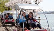17일 JW그룹 임직원으로 구성된 JW한마음봉사단이 장애인의 날(20일)을 앞두고 거동이 불편한 장애·홀몸노인들과 함께 경기 의왕시 ‘의왕레일파크’를 찾아 벚꽃을 구경하면서 레일바이크를 타고 있다. 의왕=최혁중 기자 sajinman@donga.com}