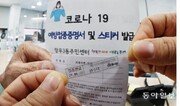 개편된 사회적 거리두기 시행 첫날인 1일 오후 서울 중랑구 망우3동 주민센터에서 접종 스티커를 발급 받은 한 어르신이 직원의 도움을 받아 신분증에 부착하고 있다. 최근 코로나19가 다시 확산되는 양상에 수도권은 새로운 거리두기 적용이 1주일 유예됐으나, 백신 접종자를 위한 인센티브 제도는 예정대로 전국에서 시행된다. 이에 따라 1차 접종자 및 접종 완료자는 야외에서 마스크를 착용하지 않아도 되고, 접종 완료자는 사적모임이나 모임·행사 인원 제한 기준에서 제외된다. 양회성 기자 yohan@donga.com}