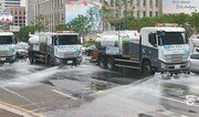 서울 낮 최고 기온 36도 등 전국에 폭염특보 속 불볕 더위가 계속되고 있습니다. 28일 오후 서울 중구 세종대로에서 도로청소차량들이 도로에 물을 뿌리고 있습니다. 서울시는 오는 8월 중순까지 낮 시간 주요 간선도로 물청소 횟수와 범위를 확대한다고 밝혔습니다. 낮 최고 기온 시간대에 도로를 물청소하면 도로면 온도는 6.4도, 주변(인도) 기온은 1.5도 낮아지는 효과가 있다고 합니다.양회성 기자 yohan@donga.com}