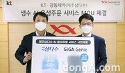 집에서 인공지능(AI) 스피커를 이용해 말 한 마디로 생수를 구매하고 배송까지 받을 수 있는 서비스가 시작된다. 소비자 소비 패턴을 분석해 생수 구매 시점을 미리 음성으로 알려주기도 한다.제주삼다수 소매 유통을 담당하고 있는 광동제약은 KT와 ‘AI 생수 간편 주문 서비스’ 론칭을 위한 업무협약을 체결했다고 15일 밝혔다. 사업협력지원을 위해 제주특별자치도개발공사(제주개발공사)도 참여한다. 협약식은 서울 서초구 소재 광동제약 사옥에서 진행됐다. 구준모 광동제약 생수영업부문장과 최준기 KT AI·빅데이터사업본부장 등 주요 관계자가 참석했다.AI 생수 간편 주문 서비스는 KT의 AI 스피커 ‘기가지니’를 통해 음성으로 간편하게 제주삼다수를 구매할 수 있는 프로그램이다. 국내 생수 브랜드 최초로 시도하는 서비스로 오는 9월 중 오픈을 목표로 하고 있다.KT는 음성인식과 개인화AI 기술, 단말설치주소 등을 통해 생수 주문을 간편화하고 주문내역을 광동제약 측에 제공한다. 광동제약은 주문내역에 따라 전국 130여개 제주삼다수 직송대리점을 연결해 전담 배송직원이 집 앞까지 제주삼다수를 배송하는 방식이다.구준모 광동제약 생수사업부문장은 “생수는 무거운 무게로 한 번에 많은 양을 구매하기 어렵고 큰 부피로 보관이 불편해 필요할 때마다 매번 구매해야 하는 번거로움이 있었다”며 “불편을 해소하기 위해 간편 주문 서비스와 가정배송 서비스를 강화했고 이번에 AI 생수 간편 주문 서비스 도입을 추진하게 됐다”고 말했다.한편 광동제약이 소매 유통을 맡고 있는 제주삼다수는 현재 국내 생수시장 점유율이 40%대로 지난 1998년 출시 후 23년간 시장 점유율 1위를 유지하고 있다. 이번 제주삼다수와 KT의 협업이 국내 생수 유통 구조 패러다임 전환을 가속화 시킬 것으로 업계는 전망하고 있다.동아닷컴 김민범 기자 mbkim@donga.com}