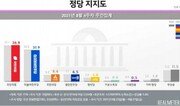 국민의힘이 정당 지지도 조사에서 3주만에 더불어민주당을 오차범위 밖에서 앞섰다. 문재인 대통령의 국정 수행 지지도 긍정평가는 소폭 하락했지만 40%대 초반을 유지했다.리얼미터가 YTN 의뢰로 지난 23~27일 전국 18세 이상 남녀 2524명에게 정당 지지도를 조사한 결과, 국민의힘은 전주보다 0.2%포인트 떨어진 36.9%로 집계됐다. 민주당은 31.9%로 전주보다 0.9%포인트 하락했다.양당 격차는 5.0%포인트로 오차범위(±2.0%포인트) 밖으로 벌어진 것은 3주 만이다. 민주당의 언론중재법 단독 강행 처리 등이 지지율에 부정적인 영향을 미친 것으로 풀이된다.지역별로 국민의힘은 부산·울산·경남(5.8%포인트↑)지역에서 지지율이 올랐지만 대전·세종·충청 지역(6.5%포인트↓)에서는 떨어졌다. 민주당 역시 대전·세종·충청(6.5%포인트↓)지역에서 하락했고 광주·전라(3.1%포인트↑)에서는 오름세를 보였다.연령별로 보면 국민의힘은 60대(3.7%포인트↓)·20대(1.5%포인트↓)에서 지지율이 떨어졌고, 70대 이상(4.4%포인트↑)에서는 올랐다. 민주당은 70대 이상(8.5%포인트↓)·20대(2.2%포인트↓)에서 하락세를, 50대(1.8%포인트↑), 40대(1.3%포인트↑)에서 상승세를 기록했다.이 밖에 국민의당(6.6%), 열린민주당(6.5%), 정의당(3.8%), 기본소득당(0.6%), 시대전환(0.5%) 순으로 뒤를 이었다. 기타정당은 1.8%, 무당층은 11.5%였다.한편 문재인 대통령에 대한 국정 수행평가는 긍정 41.3%, 부정 54.7%, 무응답 3.6%로 나타났다. 긍정평가는 전주 41.6%보다 0.3%포인트 떨어졌으며, 부정평가는 55.7%에서 1%포인트 하락했다.긍정 평가는 4주 연속 40% 초반대를 기록하고 있으며, 부정 평가와의 차이는 13.4%포인트로 4주 연속 두 자릿수를 격차를 보였다. 특히 연령대별로 30대(7.4%포인트↓)·70대 이상(5.3%포인트↓)에서 지지율이 크게 떨어진 반면 50대(4.2%포인트↑)와 20대(4.0%포인트↑)에선 오름세를 보였다.이번 조사는 무선 전화면접(10%), 무선(80%)·유선(10%) 자동응답 혼용 방식으로 조사됐으며 표본 오차는 ±2.0%포인트(95% 신뢰수준)다. 자세한 내용은 리얼미터 홈페이지 또는 중앙선거여론조사심의위원회 홈페이지를 참조하면 된다.김혜린 동아닷컴 기자 sinnala8@donga.com}