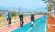 7일 대구 북구 노곡동 금호강변에서 시민들이 자전거 페달을 밟으며 완연한 봄 날씨를 즐기고 있다. 금호강을 따라 조성한 자전거길은 대구 달성군 다사읍에서 동구 숙천동(41.3km)까지 이어진다. 장영훈 기자 jang@donga.com}