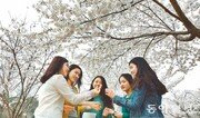 8일 대구 달서구 신당동 계명대 성서캠퍼스에서 여대생들이 막바지 벚꽃을 만끽하며 이야기꽃을 피우고 있다. 계명대 제공}