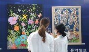 8일 오전 서울 강남구 코엑스에서 열린 2021 한중일 발달장애 미술작가 특별전 ‘바다를 건너 꽃 핀 대화’를 찾은 관람객들이 작품을 감상하고 있다. 특별전 개막식에는 여승배 외교부 차관보, 싱하이밍 주한 중국대사, 소마 히로히사 주한 일본대사관 총괄공사가 참석했다. 이번 전시에는 한중일에서 각각 16개 작품을 출품해 총 48개 작품이 10일까지 전시된다. 김재명 기자 base@donga.com}