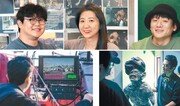 “헐크 크기의 ‘근육괴물’, 특수분장과 컴퓨터그래픽(CG)으로 만든 ‘연근괴물’은 놀라움 그 자체다.” 넷플릭스 ‘스위트홈’에 대해 미국 영화 정보 사이트 ‘IMDb’에 한 평론가가 남긴 리뷰다. 국내외 넷플릭스 ‘톱10’을 휩쓴 스위트홈의 인기 요인은 웹툰에서 걸어 나온 듯한 괴물 크리처에 있다. 운동 중독으로 “프로틴”을 중얼거리는 근육괴물, 머리가 잘려나간 단면이 연근을 닮아 ‘연근이’라는 별명이 붙은 연근괴물 등 크리처들에 숨을 불어넣은 김설진 안무가(40)와 시각특수효과(VFX) 업체 ‘웨스트월드’의 이병주 슈퍼바이저(39), 정고은 이사(42)를 만났다. ○ ‘연근이의 실체’, 김설진 안무가 벨기에 현대무용단 ‘피핑톰’ 단원이자 엠넷 ‘댄싱9’ 우승자로도 잘 알려진 김 안무가는 스위트홈에서 크리처들의 움직임을 설계했다. 이응복 PD는 김 안무가가 크리처 디자인을 위해 레퍼런스로 제시한 ‘반덴브란데 32번지’ 무대 영상에서 그가 뭉크의 ‘절규’를 표현하는 장면을 보고 연근괴물 역할도 함께 맡겼다. 8일 서울 강동구 연습실에서 만난 김 안무가는 크리처 구축 과정을 ‘전사(前史)를 찾는 과정’이라고 설명했다. 그는 “크리처의 행동이 이렇게 나올 수밖에 없는 이유를 찾았고, 습관처럼 튀어나오는 움직임이 있다면 이유 없는 움직임이 나오게 된 전사까지 고민했다”고 말했다. 연근괴물도 철저한 전사의 구축을 통해 태어났다. 연근괴물은 회사에서의 스트레스가 심한 인물로, 괴물화 직후 머리가 베여 앞을 볼 수 없게 된다. 김 안무가는 “직장 상사로부터 모멸감을 느낀 인물인 만큼 ‘누가 내 얘기를 하면 어떡하지?’라는 피해의식에 사로잡혀 있을 것 같았다. 작은 소리에도 민감하게 반응하는 크리처로 설정했다”며 “시력을 갑자기 상실했기에 발바닥의 감각에 의존해 발을 질질 끌고, 손톱으로 벽을 더듬거리며 걷는 모습으로 연기했다”고 했다. 연근이의 마른 몸을 표현하기 위해 11kg을 감량했다. 연근괴물의 목소리도 김 안무가가 직접 냈다. 그는 “코의 윗부분이 잘렸으니 제대로 목소리를 낼 수 없겠다고 생각해 파이프오르간 뚜껑이 열린 듯한 쇳소리를 냈다”고 했다. ○ ‘버추얼 프로덕션’ 도입한 웨스트월드 웨스트월드는 스위트홈에 참여한 유일한 VFX 업체로 크리처들의 CG를 총괄했다. 6일 경기 고양시 웨스트월드 본사에서 만난 정 이사와 스위트홈 프로젝트를 총괄한 이 슈퍼바이저는 가장 주목할 점으로 버추얼 프로덕션을 꼽았다. 이는 촬영 현장에서 CG가 입혀진 화면을 실시간으로 카메라에서 볼 수 있도록 하는 기술이다. 근육괴물은 키가 430cm에 달해 현장 구현이 불가능한데, 버추얼 프로덕션 기술을 활용하면 근육괴물 역할을 하는 배우의 움직임에 CG가 입혀져 카메라에 나타난다. 이를 위해 카메라 안에서 가상공간의 3차원 좌표를 만들고, 좌표 내에서 크리처의 움직임을 파악해주는 ‘N캠’을 도입했다. 정 이사는 “N캠은 장비들이 많고 설치도 복잡해 스튜디오 촬영에 활용하는 경우가 대부분인데 야외 촬영에 N캠을 활용한 버추얼 프로덕션을 국내 최초로 시도했다”고 했다. 버추얼 프로덕션으로 정교한 연출이 가능했다. 이 슈퍼바이저는 “크리처의 크기가 촬영 감독의 상상보다 크거나 작을 수 있는데 CG로 완성된 크리처가 카메라에 나타나 촬영감독이 정확하게 앵글을 잡을 수 있었다”고 했다. 김재희 기자 jetti@donga.com}