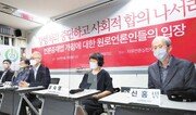 한국기자협회 등 5개 언론단체는 여야가 합의한 언론중재법 개정안의 협의체 구성에 반대하며 사회 각계가 참여하는 합의기구를 만들어 독자적 대안을 제시하겠다고 밝혔다. 한국기자협회, 전국언론노동조합, 방송기자연합회, 한국PD연합회, 한국방송기술인연합회는 1일 서울 중구 한국프레스센터에서 ‘밀실에서 광장으로, 언론중재법의 사회적 합의를 위한 독립 기구 제안’ 기자회견을 갖고 시민단체, 언론학계, 법조계, 언론현업단체 등이 참여하는 ‘언론과 표현의 자유 위원회’ 구성을 제안했다. 이 단체들은 “겨우 3주 남짓 빠듯한 시간만 허락된 여야의 ‘4+4’ 협의체는 이미 누더기가 된 법률 개정안의 미세조정을 두고 힘겨루기만 하다 파행으로 끝날 것이 불을 보듯 뻔한 상황”이라고 비판했다. 또 “언론과 표현의 자유 위원회를 통해 언론 보도 피해 유형의 구체적인 분석, 언론과 시민의 상호 이해를 도모할 중재 절차 등을 논의하고 독자적인 대안을 제시할 것”이라고 밝혔다. 한국방송학회의 전임 회장 13명은 1일 ‘징벌적 배상 등 독소 조항이 포함된 언론중재법 개정안에 반대한다’는 성명을 내고 더불어민주당의 언론중재법 개정안에 대해 “자유롭고 성역 없는 의혹 제기를 통한 언론의 권력 감시 기능을 현저히 위축시킬 수 있다”고 비판했다. 정성택 기자 neone@donga.com}