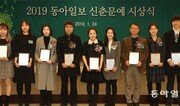 “뒷담에 낙서하는 심정으로 글을 써왔습니다. 이제 뒷담을 세상으로 확장시키겠습니다. 혼잣말이 아닌 모두를 향한 외침을 희곡이란 그릇에 담아내겠습니다.” ‘희곡가’의 이름으로 2019년 새해를 시작한 최상운 씨가 떨리는 목소리로 수상 소감을 밝혔다. 2019년 동아일보 신춘문예 시상식이 서울 중구 한국프레스센터에서 24일 열렸다. 최 씨를 비롯해 성해나(중편소설) 강석현(단편소설) 최인호(시) 강대선(시조) 민경혜(동화) 고지애(시나리오) 김채희(영화평론) 박다솜 씨(문학평론) 등 9명이 상패와 상금을 받았다. 수상자들은 벅찬 표정을 숨기지 않았다. 최인호 씨는 “당선 사실이 아직도 믿기지 않는다”며 “갓 태어난 신생아 시인의 자세로 오래도록 시와 함께하겠다”고 밝혔다. 김채희 씨는 “부끄러움과 감사한 마음이 교차한다. 초심을 잊지 않고 작품활동을 이어가겠다”며 활짝 웃었다. 수상자들은 이제 시작임을 잊지 않았다. 성해나 씨는 “상은 끝까지 힘내서 쓰라는 격려의 의미라고 생각한다”며 “앞으로 더 진중하게 소설을 대하겠다”고 각오를 다졌다. 박다솜 씨는 “당선 소식을 듣고 평론가의 윤리에 대해 다시금 고민했다”며 “독자의 감각을 일깨우는 평론가가 되겠다”고 말했다. 출발의 각오도 다졌다. 강대선 씨는 “과거보다 더 부지런히 깨치고 쓰겠다”며 “상이 오길 기다리지 않고 상을 찾아가는 시조시인이 되겠다”고 했다. 민경혜 씨는 “아이들의 가슴을 말랑말랑하게 만드는 동화를 쓰도록 노력하겠다”고 했고 고지애 씨는 “다른 이에게 즐거움을 주는 작품을 보여드리겠다”고 전했다. 심사위원인 이근배 시조시인은 격려사에서 “당대 많은 최고의 소설가들이 동아일보 신춘문예로 등단했다”며 “활기차고 장래가 촉망되는 시인을 배출한 것은 한국 문단사의 큰 경사”라고 말했다. 이어 수상자들의 이름을 일일이 호명하며 “문학은 행복한 일이다. 앞으로 활발한 활동을 기대한다”고 당부했다. 이날 시상식에는 심사위원인 오정희 은희경 구효서 소설가, 김혜순 시인, 김영찬 문학평론가, 이근배 이우걸 시조시인, 송재찬 동화작가, 이정향 영화감독 등 150여 명이 참석했다. 이설 기자 snow@donga.com}