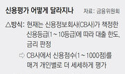신용평가 점수가 664점인 A 씨는 현재의 기준대로라면 7등급(600∼664점)으로 묶인다. 점수를 봤을 때 6등급과 신용도에는 별 차이가 없음에도 불구하고 대부분 금융회사에서 대출이 거절될 가능성이 높다. 혹여나 대출을 받게 되더라도 6등급보다 훨씬 높은 금리를 치러야 할 공산이 크다. 하지만 내년부터는 이처럼 고작 점수 몇 점 때문에 신용등급이 미끄러져 대출이 거절되는 등 손해를 보는 일이 사라질 것으로 보인다. 금융위원회는 5일 ‘개인신용등급 점수제 전환 전담팀(TF)’ 첫 회의를 열고 2020년부터 전 금융권에서 신용등급(1∼10등급) 대신 ‘신용점수(1∼1000점)’를 활용하게 됐다고 밝혔다. 신용점수제가 도입되면 200만 명이 넘는 금융소비자가 대출 금리가 낮아지는 혜택을 볼 것으로 기대된다. 지금까지 대다수의 금융회사는 신용정보회사(CB사)의 신용등급(1∼10등급)을 기준 삼아 획일적으로 여신심사를 벌여왔다. 지금도 CB사들은 내부적으로는 1000점 만점으로 개인의 신용점수를 산정하지만, 금융회사에는 이를 10개 등급으로만 분류해 제공해왔다. 이 때문에 금융회사들은 개개인에 대한 세밀한 신용평가를 하기 어려운 점이 있었다. 특히 이른바 ‘등급절벽’에 놓여 아깝게 바로 아래 등급으로 떨어진 소비자들은 손해가 컸다. 가령 신용점수가 신용등급 구간 내 상위에 있는 소비자(7등급 상위)들의 경우 위 등급(6등급)과 신용점수에서는 몇 점 차이가 안 나더라도 대출심사에서는 큰 불이익을 받아야 했기 때문이다. 이에 따라 금융당국은 지난해 1월 ‘개인신용평가체계 개선방안’을 내놓고 등급 대신 신용점수(1∼1000점)를 활용하는 방안을 추진해 왔다. 신용평가사가 금융회사에 개인의 신용점수를 제공하면 금융사도 제공받은 점수와 자체 평가를 거쳐 개별 대출 금리나 한도 등을 매기는 것이다. 실제로 올해 1월부터는 5개 시중은행(KB국민·신한·우리·KEB하나·NH농협)에서 우선적으로 신용점수제를 시범 적용해오고 있다. 이어 당국은 2020년에는 보험, 카드사 등 전 금융권으로 점수제를 확대 적용할 계획이다. 금융당국은 신용점수제가 정착되면 신용등급을 활용할 때보다 금융회사의 대출심사나 금리 결정이 훨씬 유연해질 것으로 기대하고 있다. 단순히 신용등급이 낮다고 대출을 거절하는 것이 아니라 신용점수를 기준으로 선택적으로 대출을 승인해줄 수 있다는 것이다. 또 신용점수에 따라 금리할인 수준에 ‘차등’을 주는 등 금리 결정도 훨씬 정교해질 수 있다. 금융연구원에 따르면 신용평가 점수제가 도입되면 약 240만 명의 소비자가 연 1%포인트 안팎의 대출금리 절감 혜택을 누릴 것으로 추산된다. 금융위는 금융사들로 하여금 내년 상반기에 신용점수제를 활용한 자체 신용평가 시스템(CSS)과 업무 절차를 마련하고 하반기 중 신용점수제를 전면 활용하도록 독려할 계획이다. 장윤정 기자 yunjung@donga.com}