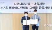 대웅제약은 지난 17일 삼성동 소재 본사에서 바이오업체 디앤디파마텍과 ‘경구용 펩타이드·단백질 의약품 공동개발 계약’을 체결했다고 21일 밝혔다.이번 계약을 통해 대웅제약과 디앤디파마텍은 다양한 펩타이드·단백질 의약품을 경구제로 개발할 예정이다. 두 업체가 후보물질을 선정해 디앤디파마텍이 제형을 만들고 대웅제약이 고형화 및 GMP를 생산하는 역할을 담당한다. 임상개발과 상업화는 디앤디파마텍이 미국과 유럽, 대웅제약은 그 외 지역을 맡는다. 개발비용 부담과 개발성공에 따른 상업화 및 라이선스아웃 수익은 절반씩 나누기로 했다.펩타이드·단백질 의약품은 생체기능을 촉진하는 효과가 높지만 위장에서 소화효소로 인해 성분이 분해돼버리는 한계가 있어 경구제로 개발하기 어려웠다. 디앤디파마텍 경구화 제제기술은 펩타이드·단백질 성분을 경구용 의약품으로 변환시켜주는 독자 플랫폼 기술로 지난해 산업통상자원부 주관 바이오산업 핵심기술 개발사업의 신규 과제로 선정되기도 했다.대웅제약은 임상에서 상업화까지 의약품 전 주기 역량에 디앤디파마텍의 경구화 제제기술을 더해 펩타이드·단백질 성분을 기반으로 한 혁신 의약품을 완성한다는 계획이다.전승호 대웅제약 대표는 “경구화 제제기술 및 글로벌 임상역량을 보유한 디앤디파마텍과 협력할 수 있어 향후 두 업체간 시너지 효과가 매우 클 것으로 기대한다”며 “성공적인 임상개발을 거쳐 다앙햔 혁신 글로벌 경구용 의약품이 탄생할 수 있도록 상호 협력에 노력할 것”이라고 말했다.임성묵 디앤디파마텍 대표는 “디앤디파마텍의 경구화 제제기술이 가치를 인정받은 것”이라며 “우수한 개발과 제조, 상업화 역량을 갖춘 대웅제약과 파트너십을 통해 경구용 의약품의 전 주기 개발이 매우 빠르고 효율적으로 진행될 수 있을 것”이라고 전했다.동아닷컴 김민범 기자 mbkim@donga.com}