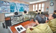 12일 경북 군위군 폐쇄회로(CC)TV 통합관제센터에서 직원들이 화면을 지켜보며 감시활동을 하고 있다. 시범운영을 마치고 이날부터 본격 운영에 들어간 이 센터는 지역 마을과 학교 등에 설치된 373대의 CCTV를 24시간 가동한다. 군위군 제공}