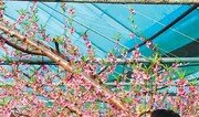 ‘봄이 오는 소리에 설레는 여심.’ 13일 경북 경산시 압량면 신월리 비닐하우스에서 한 여성이 추운 날씨를 이겨내고 활짝 핀 복숭아꽃을 만져 보고 있다. 경산시 제공}