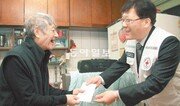 대한적십자사 대구지사 자원봉사자가 지난달 30일 중구 성내동 홀몸노인을 찾아 위로금을 전달하고 있다. 대한적십사자는 설 명절까지 북한에 가족을 두고 내려와 혼자 살고 있는 노인들에게 생필품과 위로금을 전할 예정이다. 대한적십자사 대구지사 제공}