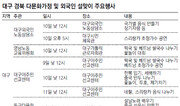 다문화가족과 외국인을 위한 설맞이 행사가 대구 경북 곳곳에서 열린다. 대구외국인노동상담소(달서구 본리동)는 10일 오전 지역 외국인 근로자 200여 명이 참석한 가운데 장기자랑 대회를 연다. 국가별 전통음식을 만들어 나눠 먹는 시간도 가진다. 동구 다문화가족지원센터도 7일 반야월성당에서 다문화가정을 위한 설날 잔치를 마련한다. 나라별 명절을 소개하고 복주머니 만들기와 설 명절 노래 배우기 등을 한다.(표 참조) 경북도는 13개 시군 다문화가족지원센터에서 설날 행사를 연다. 구미 다문화가족지원센터는 6일 형곡동 주민자치센터에서 설 명절 체험행사를 한다. 먼저 온 결혼이민여성이 후배에게 명절음식 만들기와 차례상 차리는 방법을 가르쳐 준다. 현재 외국인 주민은 대구 3만1231명, 경북 5만6250명이다.장영훈 기자 jang@donga.com}