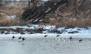 15일 대구 동구 대림동 안심습지에서 철새들이 힘차게 날아오르고 있다. 최근 본류인 금호강 정비사업 이후 습지 환경이 좋아져 하루 수백 마리의 철새가 이곳을 찾고 있다. 장영훈 기자 jang@donga.com}