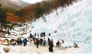 16일 대구 달성군 유가면 비슬산자연휴양림에 꾸며진 얼음동산에서 관광객들이 풍경을 감상하며 기념사진을 찍고 있다. 지난해 12월 24일 문을 연 이곳은 지금까지 4만7000여 명이 찾았다. 매일 오전 10시부터 오후 10시까지 개방한다. 달성군 제공}