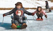 10일 대구 수성구 범물동 진밭골 입구 대덕지 못에서 어머니와 아들이 썰매를 타며 즐거워하고 있다. 수성구가 3일 개장한 이곳은 지금까지 시민 2000여 명이 찾았다. 대구 수성구 제공}