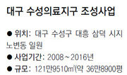 대구 수성의료지구 조성사업이 올해 말부터 본격화된다. 2008년 대구경북경제자유구역으로 지정된 지 5년 만이다. 121만9500m²(약 36만8900평)에 7717억 원이 들어가는 이 사업은 의료와 교육 문화 정보기술(IT) 지식서비스산업을 유치해 명품도시로 꾸민다는 구상이다. 사업시행사인 대구도시공사는 올해 말 착공해 2016년 완공할 계획이다. 거주 예상 규모는 2200여 가구에 6200여 명. 수성의료지구가 들어설 대흥동 주변은 문화기반시설이 좋은 편이다. 대흥동과 삼덕동, 연호동 등 9700여 가구 3만여 명이 살고 있는 도시와 농촌이 어우러진 도농복합도시. 아파트단지 인근에 포도와 자두, 사과 과수원을 하는 주민도 있다. 여기서 생산하는 ‘고산 포도’는 전국적으로 유명하다. 가장 중요한 기반시설은 2011년 세계육상선수권대회 주경기장으로 주목 받았던 대구스타디움. 경기장 옆에 스타디움몰이 생기면서 유동인구가 늘었다. 스타디움몰에는 대형할인점과 극장, 의류 및 식당 등 점포 140여 개가 들어섰다. 쇼핑하기에 편리하고 주변이 체육공원이어서 찾는 이가 많다. 대구시에 따르면 2011년 대구스타디움과 주변 시설을 이용한 사람은 550만 명에 이른다. 세계육상선수권 이후 스포츠체험관 같은 문화여가시설이 들어서면서 시민 휴식공간으로 제 역할을 하고 있다. 2011년 5월 문을 연 대구미술관과 올해 5월 개관하는 육상진흥센터가 인근에 있어 이 지역을 찾는 사람이 더욱 늘어날 것으로 보인다. 지하철 2호선 대공원역 옆에는 지난해 12월 새 야구장 건설 공사가 시작됐다. 프로야구 삼성의 새 안방구장이다. 의료지구는 정부에 신청한 3500억 원 규모의 공사채(주택 및 도로 건설 등의 경비를 마련하기 위해 발행하는 공채) 발행이 다음 달 승인이 나는 대로 진행된다. 토지 보상을 위한 조사는 지난해부터 진행 중이다. 4월 감정평가를 마치면 6월에는 보상협의가 시작될 예정이다. 지구 내 주택과 산업단지를 연결하는 도로(폭 25∼30m, 길이 3.28km)도 올해 187억 원의 국비를 확보해 조만간 착공한다. 문제는 개발지구 내 땅주인이 630여 명이나 돼 토지 보상을 합의하는 게 쉽지 않다는 점. 이종덕 대구도시공사 사장은 “의료법인과 국제학교 설립 문제는 전문기관에 연구를 의뢰했다”며 “대구를 상징하는 새로운 지식산업과 생태문화가 어우러진 복합의료공간이 되도록 할 것”이라고 말했다. 대구를 상징하고 미래를 이끌 핵심단지로 꾸미겠다는 얘기였다. 장영훈 기자 jang@donga.com}