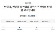 일제강점기 강제징용 피해자들이 일본 기업을 상대로 제기한 손해배상 청구 소송에서 각하 판결을 내린 재판장을 탄핵해야 한다고 주장하는 청와대 국민청원이 게시된 지 하루 만에 20만 명 이상의 동의를 얻었다.8일 청와대 국민청원 게시판에는 ‘반국가, 반민족적 판결을 내린 판사의 탄핵을 요구합니다’라는 제목의 청원이 올라왔다.청원인은 “한일협정에 따라 개인청구권이 소멸됐다는 판사의 입장은 일본 자민당 정권에서 과거사 배상 책임을 지지 않기 위해 내세운 변명에 불과하다”며 “국헌을 준수하고, 사법부의 정기를 바로 세우며, 민족적 양심을 회복하기 위해서라도 김 부장판사를 즉각 탄핵 조치해야 한다”라고 주장했다.해당 청원은 하루가 지난 9일 오후 1시 기준 21만여 명의 동의를 얻었다. 20만 명 이상의 동의를 얻은 청원은 청와대의 공식 답변을 들을 수 있다.앞서 7일 서울중앙지법 민사합의34부(부장판사 김양호)는 강제징용 피해자와 유족 85명이 일본제철 등 일본 기업 16곳을 상대로 낸 손해배상 소송에서 각하 판결했다.재판부는 “대한민국 국민이 일본 또는 일본 국민에 대해 가지는 개인청구권은 청구권협정에 의하여 바로 소멸되거나 포기되었다고 할 수는 없지만, 소송으로 이를 행사하는 것을 제한된다”고 판시했다.또 “강제집행이 이뤄질 경우 일본과 관계가 훼손될뿐더러 한미동맹으로 우리 안보와 직결돼 있는 미국과의 관계 훼손까지 이어질 수 있다”며 국제 관계도 이번 판결에 고려했다.김혜린 동아닷컴 기자 sinnala8@donga.com}