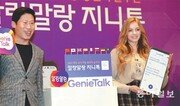 배우 유해진(왼쪽)이 29일 서울 종로구 포시즌스호텔에서 평창 겨울올림픽 공식 자동통번역 솔루션 ‘말랑말랑 지니톡’을 선보인 간담회에서 모델과 함께 포즈를 취하고 있다. 지니톡은 한글과컴퓨터와 한국전자통신연구원이 공동으로 개발한 솔루션으로 평창 겨울올림픽에 특화된 한국어와 영어, 중국어, 일본어 등 8개 언어의 번역 기능을 제공한다. 박영대 기자 sannae@donga.com}