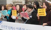 ‘안희정 전 지사 성폭력 사건 대책위원회’와 전국성폭력상담소협의회 관계자들이 13일 서울 영등포구 국회 앞에서 기자회견을 열고 ‘미투’ 운동을 지지하는 구호를 외치고 있다. 이날 참석자들은 위력에 의한 성폭력의 중단을 촉구했다. 기자회견에서는 안희정 전 충남도지사로부터 성폭력을 당한 3번째 피해자가 있다는 주장도 나왔다. 박영대 기자 sannae@donga.com}