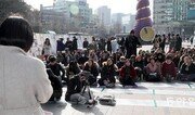 22일 오전 서울 종로구 청계광장에서 열린 ‘2018분 동안의 이어 말하기’ 행사에 나온 여성의 발언을 참석자들이 경청하고 있다. 여성, 노동 관련 시민사회단체 약 340개로 구성된 ‘미투운동과 함께하는 시민행동’이 성폭력 근절을 촉구하며 주최한 이날 행사에서는 ‘미투(#MeToo·나도 당했다)’ 고백을 비롯한 발언과 토론이 이어졌다. 23일 오후 7시까지 이어 말하기는 계속된다. 박영대 기자 sannae@donga.com}
