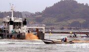 9일 전남 고흥군 금산면 우두해역에서 여름철 고수온으로 인한 적조 발생을 대비한 적조방제 모의훈련이 열렸다. 전남도와 고흥군의 어업지도선과 소형 어선 30여척이 적조를 제거 황토살포와 어선의 물살로 수류방제를 하고 있다.고흥=박영철 기자 skyblue@donga.com}