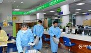 13일 광주 서구청 민원실에서 민원인들의 왕래가 없는 시간대에 구청 직원들이 접수창구와 의자 등 집기류 등의 소독작업을 하고 있다. 박영철 기자 skyblue@donga.com}