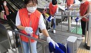 21일 광주 광산구 KTX 송정역 입구에서 광산구 공무원들이 수도권 지역에서 유입되는 신종 코로나바이러스를 차단하기 위해 입구 계단과 손잡이 부분 등의 소독 작업을 하고 있다. 박영철 기자 skyblue@donga.com}