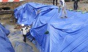 5일 광주 북구 중흥3동 재건축아파트 공사 현장에서 집중호우로 인한 주택 침수에 대비해 공사 현장 직원들 및 구청 건설과 직원들이 배수구에 대형 비닐 덮개를 설치하고 있다. 박영철 기자 skyblue@donga.com}
