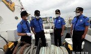 박제수 완도해경서장이 11일 태풍 등 기상 악화에 대비해 전남 완도군 완도해양경찰서 전용부두에서 직원들과 인명구조 장비 및 고속단정 등을 점검하고 있다. 박영철 기자 skyblue@donga.com}