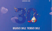 삼성카드가 올해 창립 30주년을 맞아 ‘응답하라 30년, 기대하라 30년’이라는 슬로건(사진)을 내걸고 이달 말까지 다양한 행사를 진행한다고 6일 밝혔다. 삼성카드는 과거, 현재, 미래 등 3가지 테마로 나눠 주제별로 혜택을 제공한다. ‘그때 그 가격’은 과거를 테마로 한 특가 행사다. 티몬에서 3월 한 달간 매주 수요일에는 멕시카나 치킨을, 금요일에는 도미노 피자를 선착순 각 4000명에게 9900원의 특가로 제공한다. 현재를 테마로 한 행사에선 고객들에 대한 감사의 의미로 할인 및 캐시백 혜택을 준다. 씨유(CU), 엔제리너스, 크리스피크림도넛, 공차, 버거킹 등에서 삼성카드로 행사 상품을 구매하면 50% 할인, ‘1+1’ 등 혜택을 주는 ‘해피 아워 릴레이’ 행사를 진행한다. 매주 혜택 가맹점과 행사 상품은 삼성카드 홈페이지에서 확인할 수 있다. 미래를 테마로 한 행사에서는 고객과 가족의 행복을 응원하는 마음을 담아 삼성카드 커뮤니티 서비스와 각종 제휴사를 통해 다양한 이벤트를 연다. 삼성카드의 육아 애플리케이션 ‘베이비스토리’에서는 30년 전 엄마에게, 30년 후 아이에게 메시지를 남기면 추첨을 통해 괌 여행 상품권 등 경품을 제공한다.강유현 기자 yhkang@donga.com}
