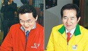 4·11총선 후보등록 첫날인 22일 오전 서울 종로구에 출사표를 낸 새누리당 홍사덕 후보(왼쪽 사진)와 민주통합당 정세균 후보가 종로구선관위에 각각 후보자 등록서류를 제출하고 있다. 종로는 6선의 홍 후보와 4선의 정 후보가 지역구를 옮겨 맞붙는 최대 격전지 가운데 한 곳이다. 김동주 기자 zoo@donga.com}