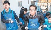 정지선 현대백화점그룹 회장(가운데)이 새해 첫 업무를 ‘사랑의 연탄 나눔’ 봉사활동으로 시작했다. 정 회장은 2일 오전 그룹 합동시무식을 마친 뒤 서울 노원구 중계동 백사마을을 찾아 서울연탄은행에 연탄 40만 장(약 2억 원어치)을 기증했다. 이어 임직원 및 고객 160여 명과 함께 저소득층 가정에 연탄 2500장을 직접 전달했다. 김동주 기자 zoo@donga.com}