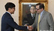 찰스 헤이 신임 주한 영국대사(오른쪽)가 4일 서울 종로구 청계천로 동아미디어센터를 방문해 김재호 동아일보·채널A 사장과 악수하고 있다. 김동주 기자 zoo@donga.com}
