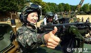 26일 경기 고양시 제9보병사단(백마부대) 전차대대를 방문한 더불어민주당 추미애 대표가 K-1 전차에 탑승해 엄지를 치켜들고 있다. 추 대표는 “철통같은 국방능력과 자주수호 의지를 갖출 때만 평화가 지켜진다”며 “이를 뒷받침해 주는 분들이 바로 대한민국의 여러분”이라고 장병들을 격려했다. 고양=김동주 기자 zoo@donga.com}