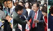 [1] 더불어민주당 추미애 대표(가운데) 등 지도부가 29일 서울 용산역에서 귀향하는 시민에게 홍보물을 나눠주며 추석 인사를 하고 있다. [2] 자유한국당 홍준표 대표(가운데)는 서울역을 찾아 귀향 인사를 했다. [3] 국민의당 안철수 대표(오른쪽)가 용산역에서 엄마와 함께 귀향하는 아이를 안아보고 있다. 김동주 기자 zoo@donga.com}