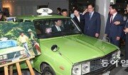 16일 국회의원회관에서 열린 ‘5·18 진상규명특별법 국회통과를 위한 힌츠페터 5·18 사진전’에서 국민의당 안철수 대표가 영화 ‘택시운전사’의 소품으로 쓰인 택시의 운전석에 앉아 웃어 보이자 더불어민주당 우원식 원내대표가 안 대표에게 거수경례를 하고 있다. 김동주 기자 zoo@donga.com}
