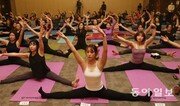 7일 오전 서울 롯데백화점 영등포점 문화홀에서 열린 ‘우먼스 피트니스 프로젝트’에 참가한 여성 고객 200여 명이 요가 수업을 받고 있다. 이 행사는 새해 다짐으로 다이어트를 결심한 고객들을 위해 마련됐다. 김동주 기자 zoo@donga.com}