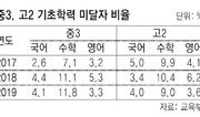 수업 시간에 배우는 수학 내용을 전혀 이해하지 못하는 ‘수포자(수학 포기자)’ 중학생이 100명 중 12명인 것으로 나타났다. 반면 ‘학교생활이 행복하다’는 중고교생은 늘어났다. 교육부와 한국교육과정평가원은 올 6월 시행한 2019년 국가수준 학업성취도 평가 결과 중3 학생의 수학 기초학력 미달자 비율이 11.8%로 집계됐다고 29일 밝혔다. 2008년 12.9% 이후 11년 만에 가장 높은 것이다. 정부는 매년 중3, 고2 학생 중 약 3%(올해는 2만4936명)를 뽑아 국·영·수 과목별 성취도를 평가한다. 중3 수학 기초학력 미달자 비율은 2017년 7.1%, 지난해 11.1%로 매년 늘고 있다. 기초학력 미달은 교육과정 성취기준 4등급(우수, 보통, 기초, 기초 미달) 중 가장 낮은 등급이다. 바로 위 등급인 ‘기초 학력’이 ‘해당 과목의 기본적인 내용을 부분적으로 이해하는 수준’임을 감안하면 수업을 전혀 이해하지 못하는 학생에 해당한다. 수학을 제외한 나머지 영역에서는 중학생 기초학력 미달률은 줄었다. 국어는 지난해 4.4%에서 올해 4.1%, 영어는 지난해 5.3%에서 3.3%로 감소했다. 고교생은 올해 수포자 비율이 줄었다. 지난해 고2 수학 기초학력 미달 비율은 10.4%였지만 올해는 1.4%포인트 감소한 9.0%로 나타났다. 고2 국어의 경우는 능력이 떨어지는 학생이 지난해 3.4%에서 올해 4.0%로 소폭 증가했다. 학생의 학교생활 행복지수는 올라갔다. 교육부는 학업성취도와 함께 매년 학생 행복도 조사를 진행한다. 올해 설문조사 결과 중3 학생의 64.4%, 고2 학생의 64.7%가 학교생활 ‘행복도 높음’ 수준인 것으로 조사됐다. 2013년 같은 조사에서는 중3의 43.6%, 고2의 40.4%만 ‘행복도 높음’ 수준이었다. 6년 만에 학생 행복도가 약 20%포인트 오른 셈이다. 박지영 교육부 교육기회보장과장은 “학생 행복도 설문은 교우관계, 사제관계, 교육환경 등을 중심으로 이뤄져 있다”며 “학교 현장에서 여기에 만족하는 학생이 늘어나고 있다는 의미”라고 설명했다. 박재명 기자 jmpark@donga.com}