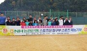 국내 최고의 여자 정구 명가 NH농협은행 선수단이 뜻 깊은 재능기부에 나섰다. NH농협은행 장한섭 스포츠단 부단장, 유영동 감독과 선수들은 25일 경북 봉화강변정구장에서 관내 봉화초등학교, 동양초등학교, 봉화중학교 학생 및 정구 동호인 60명을 대상으로 4시간 동안 정구 지도에 나섰다. 유영동 감독은 직접 중학교 선수들과 전위 발리 연습을 했으며, 국가대표 문혜경은 남녀 초등학교 선수들과 공을 쳤다. 국가대표 이민선과 백설은 동호인들과 파트너 게임을 했다. 정구 꿈나무들은 평소 존경하던 국가대표 선배 누나, 언니들에게 뭐 하나라도 더 배우려는 듯 진지한 눈빛으로 말 한마디, 동작 하나에도 집중했다. 최근 끝난 제99회 전북 체육대회에서 단체전과 여자복식에서 2관왕을 달성한 NH농협은행 선수들도 정구 저변 확대에 기여하기 위해 기꺼이 시간을 냈다. NH농협은행 정구부는 재능기부를 마친 뒤 정구 라켓, 볼, 신발, 가방, 양말, 수건 등의 물품을 어린 선수들과 참가자 등에게 전달했다. 이날 행사에는 엄태항 봉화군수, 손진혁 NH농협은행 봉화지부장 등 관계 인사 20명도 함께 했다. NH농협은행은 지난해 10월에는 서울에서 차로 6시간 넘는 거리인 전남 고흥에서 재능기부행사를 갖기도 했다. 유영동 감독은 “어린 선수들이 오늘 만남을 통해 꿈을 키우는 계기가 되기를 바란다”고 말했다. 정구부 감독 출신인 장한섭 부단장은 “보람있는 자리였다. 앞으로도 지속적으로 사회공헌 활동을 펼치겠다”고 소감을 밝혔다. 김종석 기자 kjs0123@donga.com}