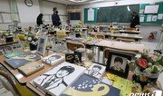 “항상 기억하고 있을게. 하늘에서는 꼭 행복해야 해.” 16일 오전 경기 안산시 4·16민주시민교육원 기억관에 위치한 ‘기억교실’. 벽에 걸린 2014년 4월 달력엔 펜으로 눌러쓴 ‘수학여행’ 네 글자가 또렷이 남아 있다. 칠판 옆 식단표도 7년 전 모습 그대로다. 시간이 멈춰버린 교실엔 남겨진 이들의 아픔과 그리움, 미안함만 켜켜이 쌓였다. 세월호 참사로 희생된 학생들의 교실을 복원해둔 이곳엔 7주기를 맞은 이날 오전 내내 비가 내리는데도 추모객의 발길이 끊이지 않았다. 참사 당시 학교는 다르지만 같은 동아리였던 친구를 잃었던 김지훈 씨(24)도 이날 어머니 이모 씨(52)와 함께 기억교실을 찾았다. 이 씨는 “다시는 이런 일이 일어나지 않도록 아이들을 영원히 기억하겠다”며 눈물을 보였다. 전남 진도군 사고 해역에서는 유가족과 4·16재단 관계자 등 59명이 참석한 ‘선상추모식’이 열렸다. 고 이호진 군의 아버지 이용기 씨(52)는 추도사에서 “(7주년이 된) 오늘이 특별한 것이, 아이들이 수학여행을 갔던 요일도 겹치고 날씨도 사고 당일과 비슷하다. 자꾸만 목이 메어온다”며 “정부와 국회는 세월호 침몰 원인을 제대로 밝혀주시길 바란다”고 했다. 유가족들은 추도사 낭독 뒤 희생된 아이들 250명의 이름을 한 명씩 한 명씩 불렀다. 바다에 국화꽃을 던지며 오열하기도 했다. 같은 날 안산 화랑유원지에서는 ‘세월호 참사 7주기 기억식 및 4·16생명안전공원 선포식’이 열렸다. 유은혜 사회부총리 겸 교육부 장관과 전해철 행정안전부 장관, 주호영 국민의힘 당 대표 권한대행 등 약 100명이 참석했다. 기억식에서 친구들에게 보내는 편지를 낭독한 세월호 생존 학생 장애진 씨(24)는 “기억하겠다는 약속, 다시는 이런 일이 일어나지 않게 책임지겠다는 약속, 진상규명하겠다는 약속을 지켜 달라”고 호소하기도 했다. 학생들이 다니던 안산 단원고에서도 오전 10시부터 비공개 추모식이 열렸다. 재학생들은 스스로 창작한 추모 연극을 선보이고, 노란 리본 교체식 등을 진행했다. 추모를 담은 편지 10여 장도 노란 리본과 함께 학교 울타리에 걸렸다. 한 편지에는 “잊지 않고 기억하겠습니다. 언제나 별이 된 그들을”이란 글귀가 적혀 있었다.안산=김태성 kts5710@donga.com / 목포=이형주 기자}